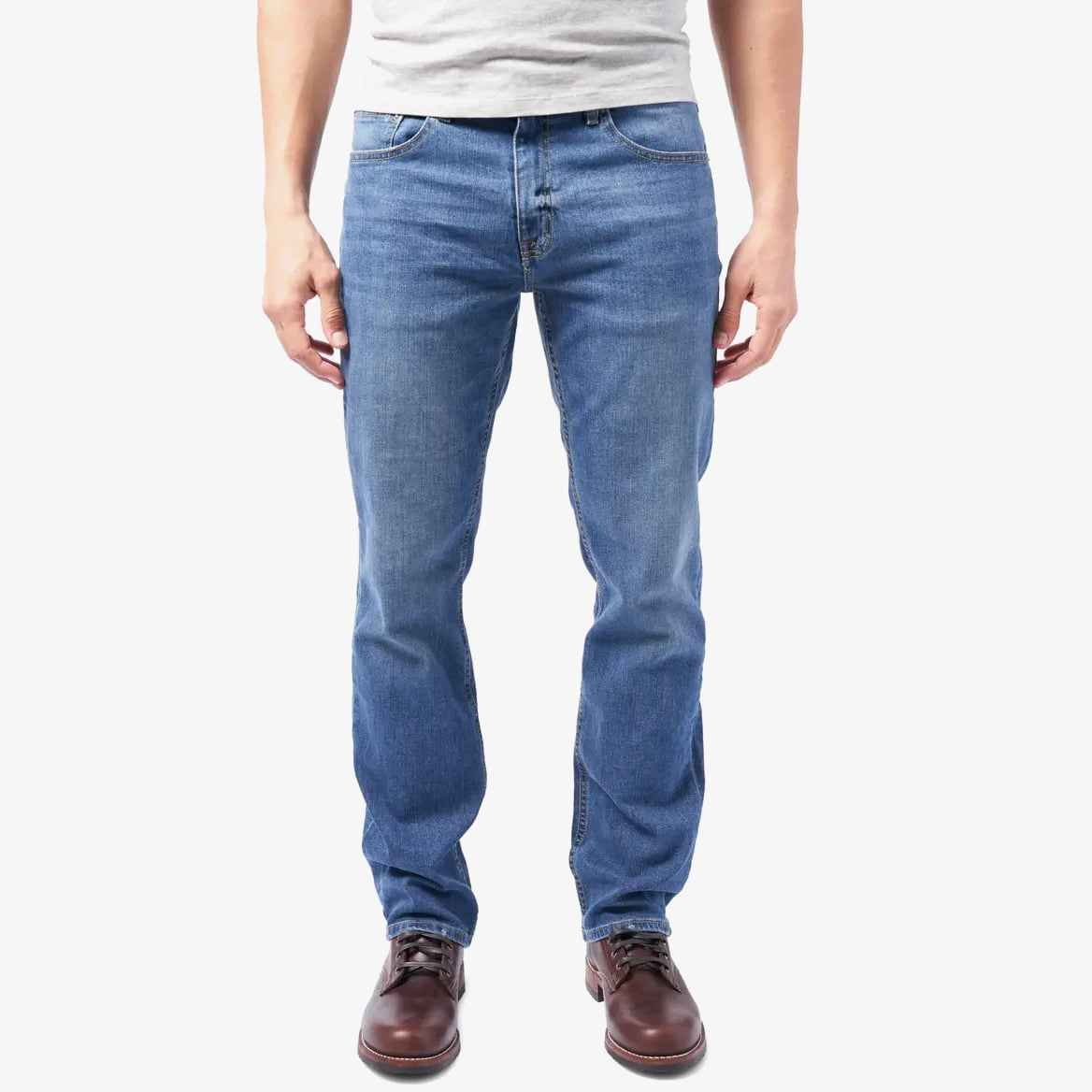 - Cut with boot-covering flare at the ankles, these stretchy performance jeans feature Lycra® dualFX® technology for flexibility, comfort and shape retention.